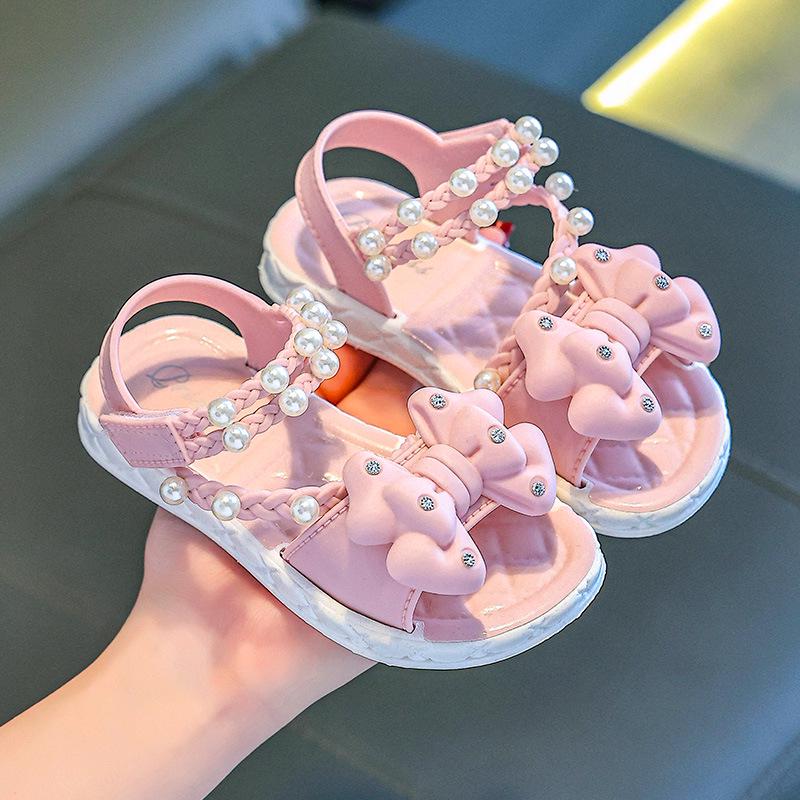 Новые сандалии с мягкой подошвой и бантом принцессы для девочек - Милая летняя обувь для малышей Size 27, 17cm розовый