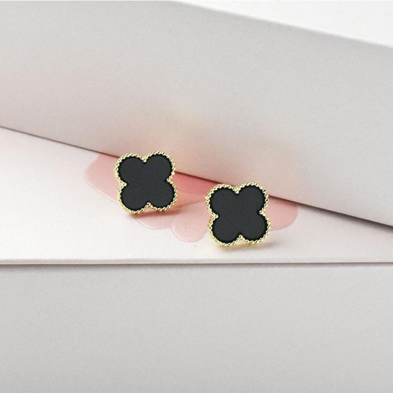 Новые серьги-клеверы с четырьмя листочками Простые универсальные серьги для пожилых людей Легкие роскошные темпераментные простые милые серьги чёрный