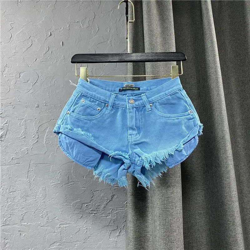 Новые стильные джинсовые шорты для женщин, Новинка лета 2024, острые зеленые винтажные сверхпрочные потертые джинсовые шорты для девушек, верхняя одежда