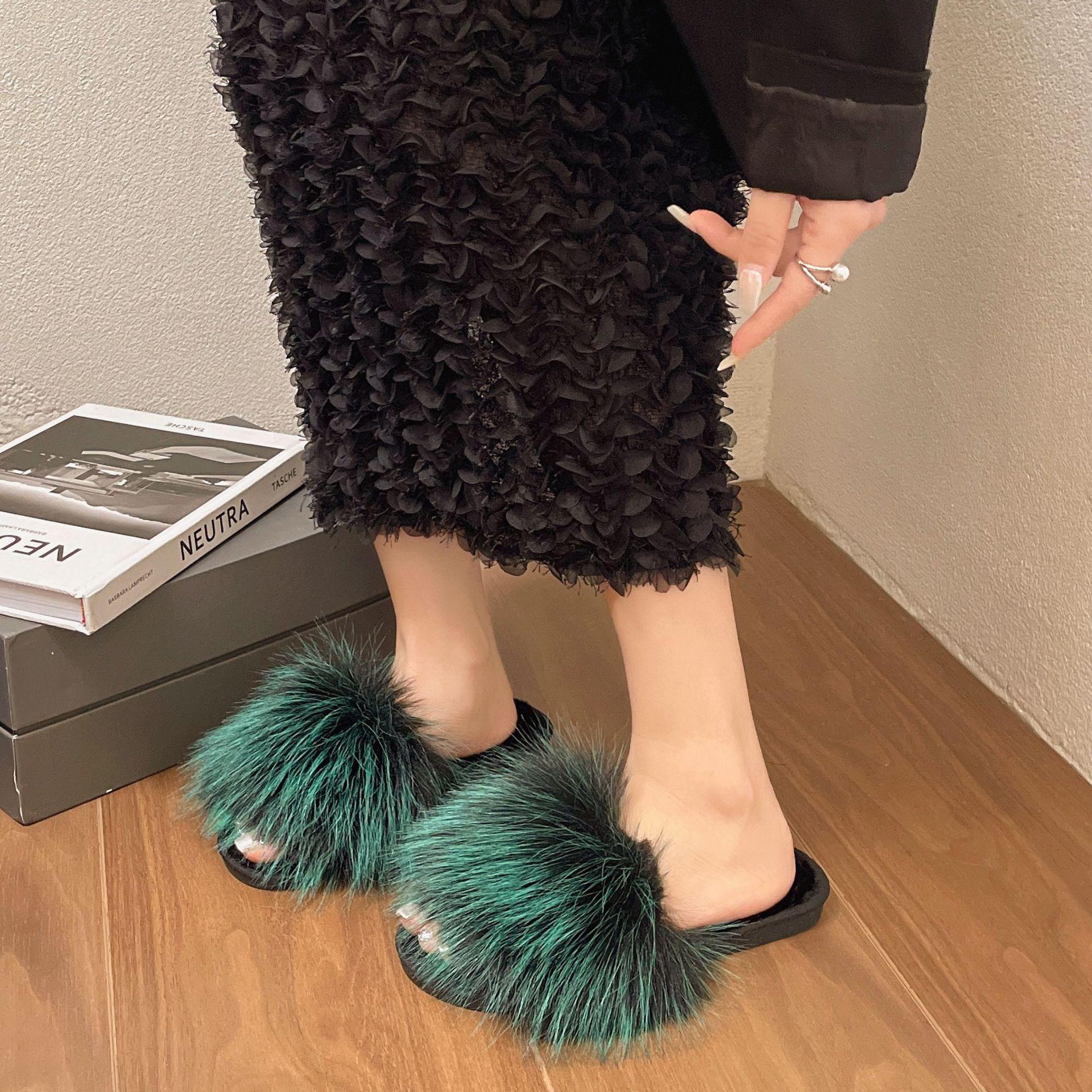 Новые удобные мягкие тапочки с плюшевой подкладкой для дома и улицы, теплые и модные, универсальные меховые тапочки 40-41 зелёный