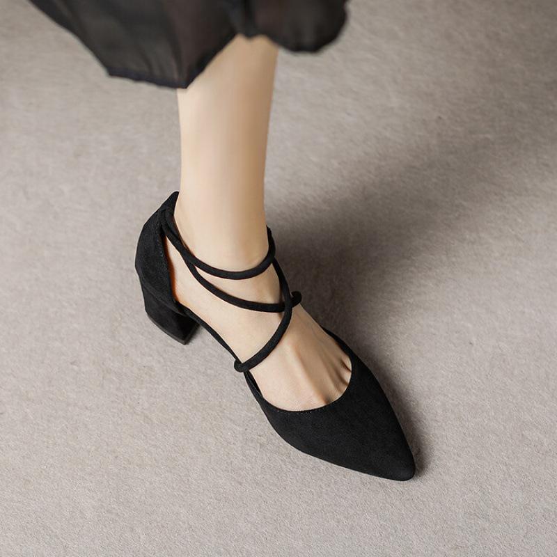 Новые черные маленькие кожаные туфли с острым носком, замшевые, на высоком каблуке, удобном квадратном каблуке, резиновой подошве, больших размеров, женские одинарные туфли для носки в любое время года 39 чёрный