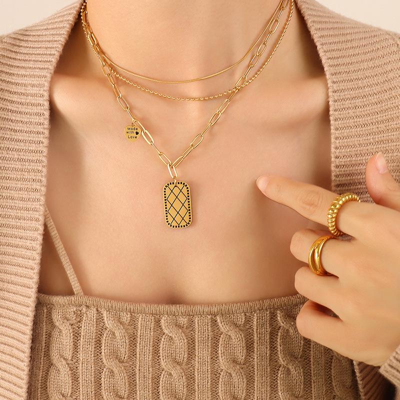 Новые ювелирные изделия, трехслойное квадратное ожерелье с подвеской Love в стиле панк из титановой стали с 18-каратным золотом на ключицу