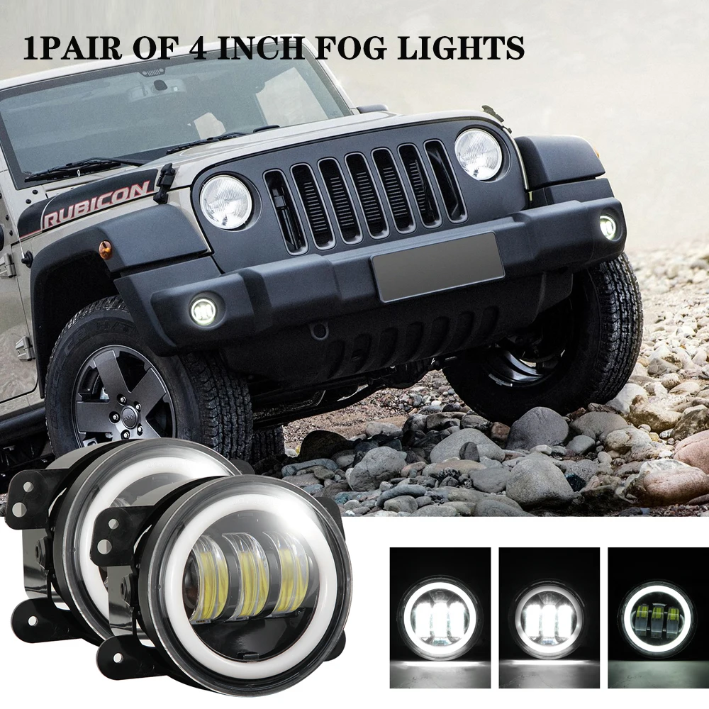 Новые 4-дюймовые светодиодные противотуманные фары с белым DRL, Янтарный указатель поворота для Jeep Wrangler JK LJ TJ Dodge Chrysler Journey Magnum
