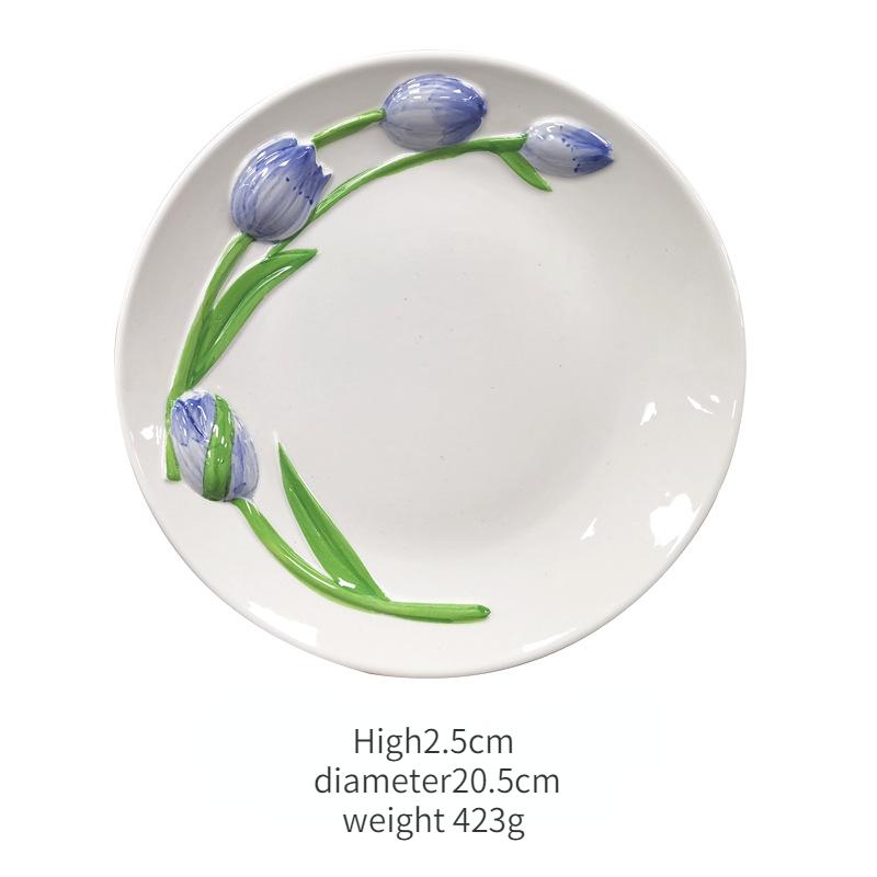 Новые Ins Рельефный трехмерный тюльпан Керамическая тарелка для обеда Кружка для торта Десерт Тарелка для послеобеденного чая Расписанная вручную керамическая чашка