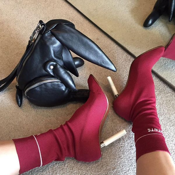 Новый Дизайн Классический Легче Вдохновил Высокие Каблуки Эластичный Носок Боти