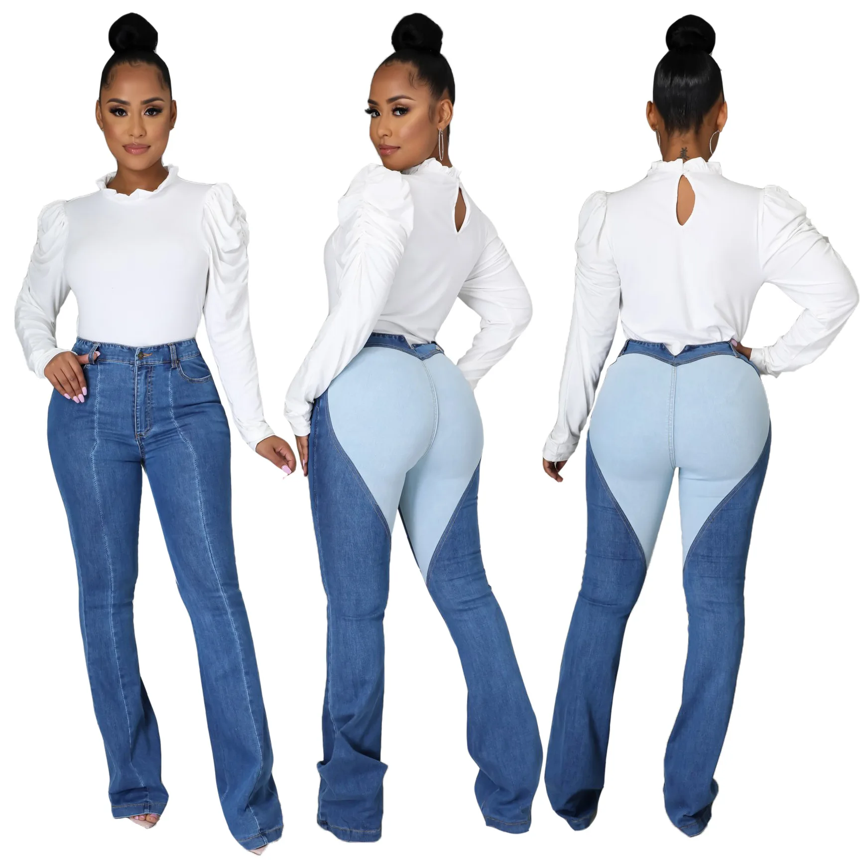 Новый Для женщин Повседневное все-матч с отстрочкой контрастного прямые узкие джинсы