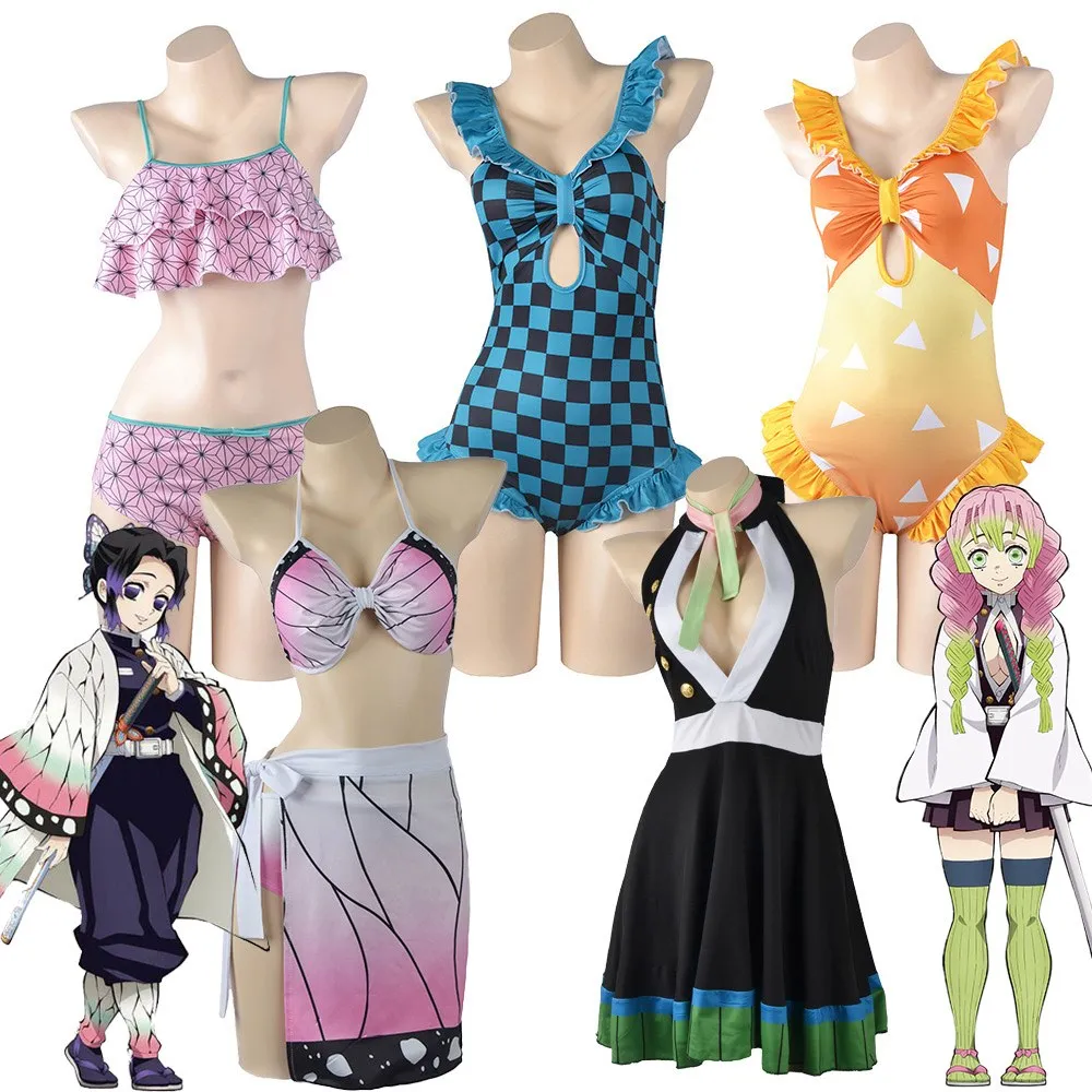 Новый Косплей-костюм для плавания, рассекающий демонов, Mitsuri Shinobu tanjzeniro itsu, пляжный костюм, реквизит