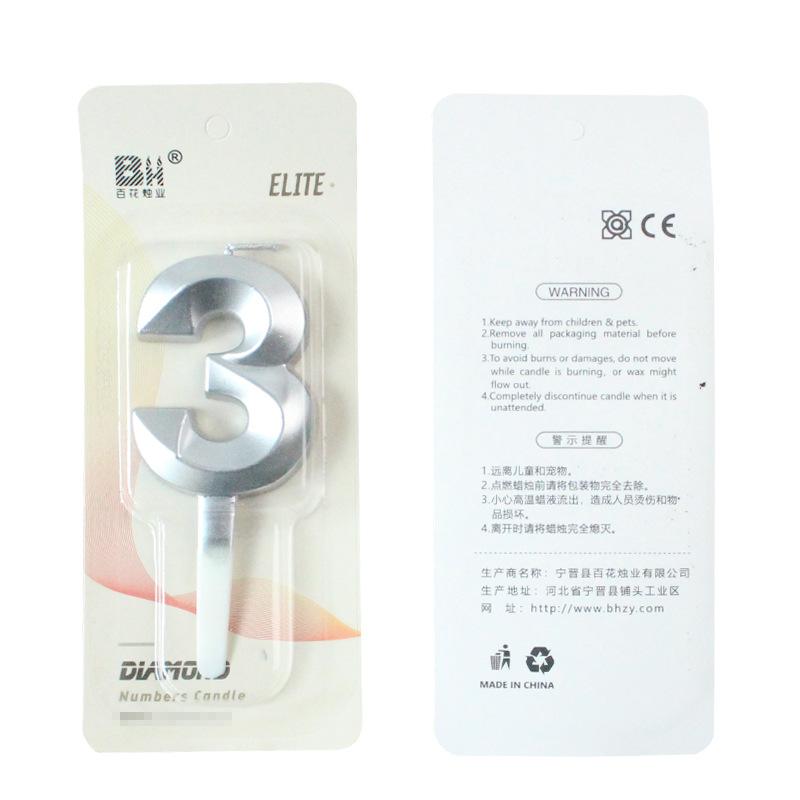 Новый Креативный Торт на День Рождения Вечеринка Украшение на День Рождения Трехмерная Серебряная Алмазная Большая Свеча в виде Цифры Diamond Silver Digital Candle 9