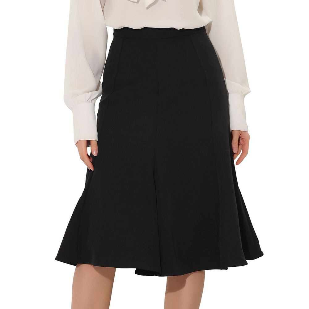 Расклешенная юбка-миди трапециевидной формы для женщин, элегантные юбки с высокой талией и боковой молнией ALLEGRA K, черный
