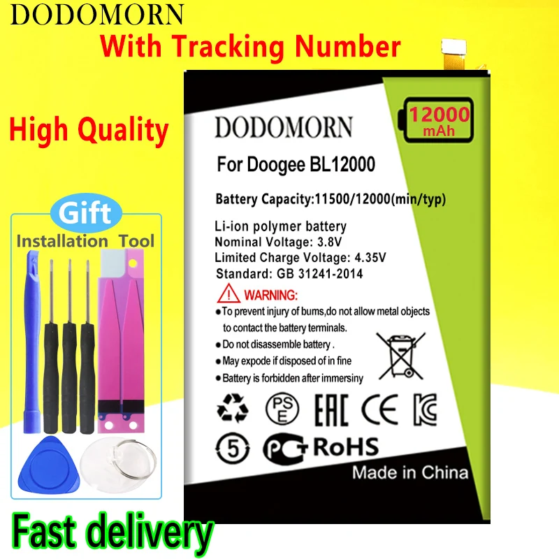 Новый аккумулятор DODOMORN Для Doogee BL12000 Pro / BL12000 мобильный телефон + номер отслеживания + Подарочные инструменты