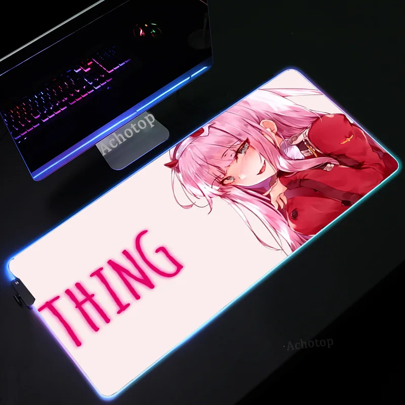 Милый коврик для мыши Zero Two с RGB-подсветкой, со светодиодной подсветкой, для ноутбуков, мини-ПК, игровые аксессуары, геймерский коврик с клави...