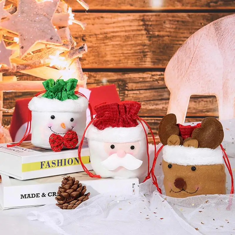 Новый год 2023, сумка для конфет, искусственная сумка на шнурке с Санта-Клаусом и оленем для хранения в домашних условиях