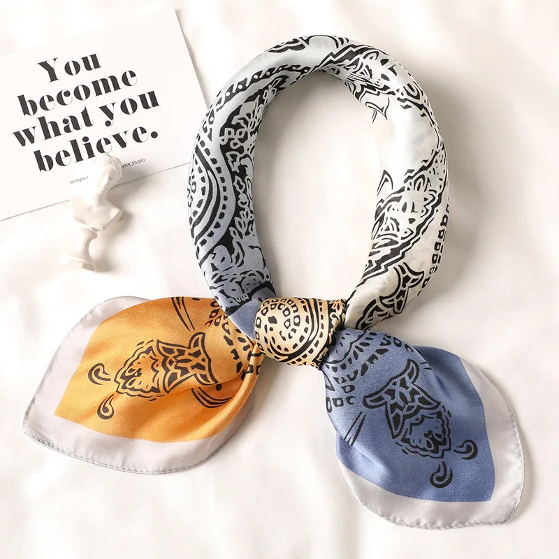 Новый двухцветный градиентный Шелковый Ретро-шарф, большой женский многофункциональный квадратный шарф 70*70 см, шелковый шарф