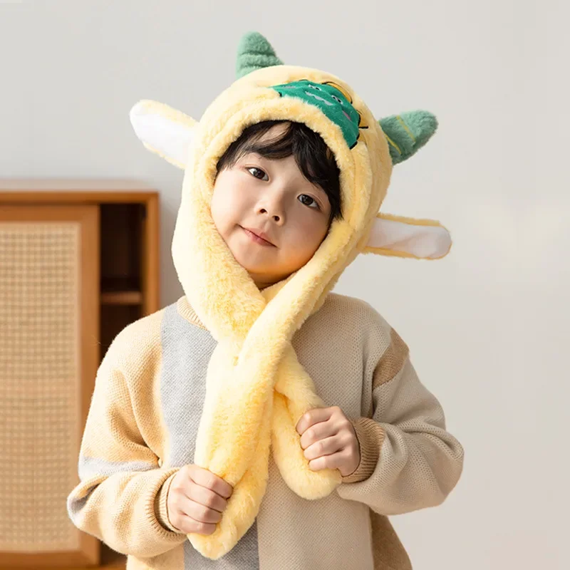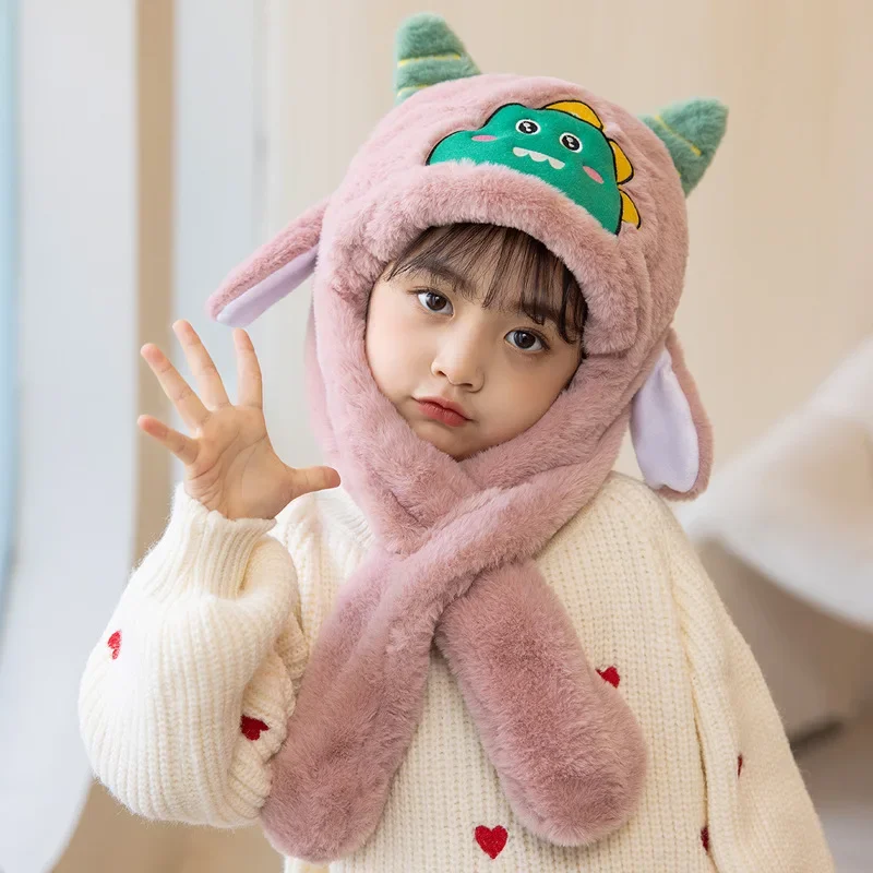 Новый детский Флисовый Шарф, интегрированная шапка для мальчиков, модная зимняя шапка для защиты шеи и ушей