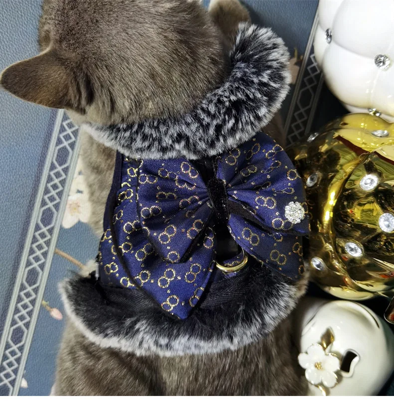 Новый дизайн, брендовый стиль, дизайнерский зимний плюшевый теплый костюм-поводок с бантом