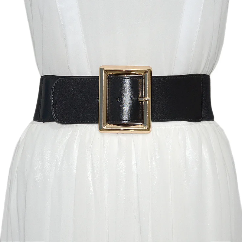 Новый женский ремень с эластичной талией и металлической квадратной пряжкой