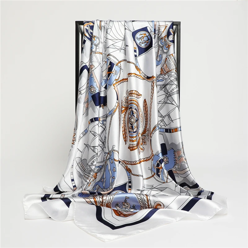 Новый квадратный шарф с принтом для женщин, Шелковый платок, женский платок, повязка на голову, повязка на голову, бандана, сатиновый хиджаб, 2022