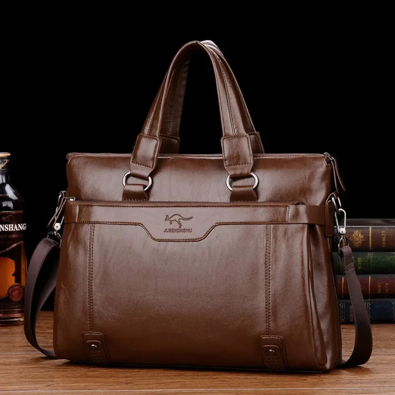 Vintage Men's Zipper Briefcase Business PU Leather Executive Handbag Large Capacity Shoulder Messenger Bag Male Laptop