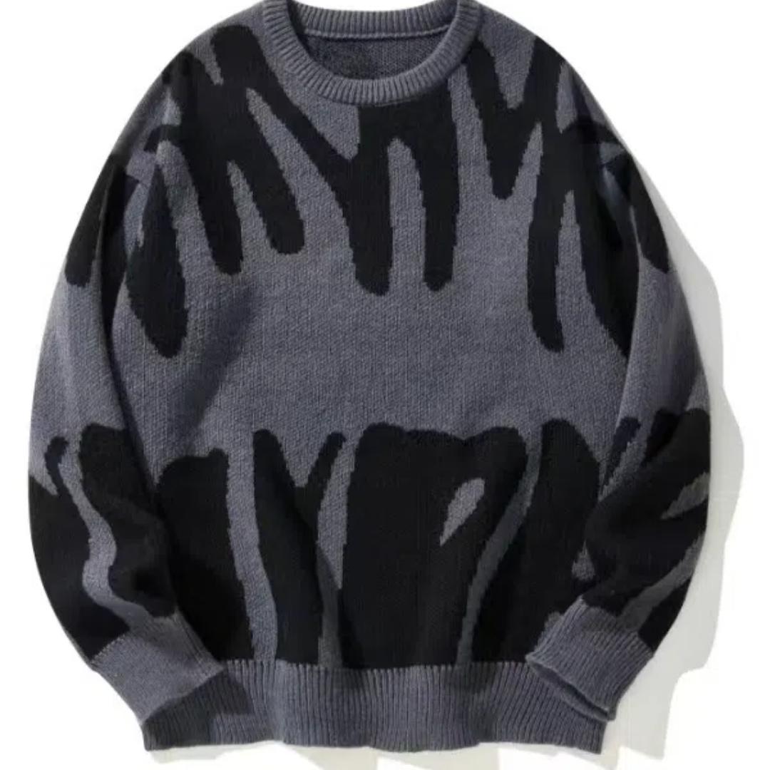 Новый контрастный круглый вырез женский ретро ленивый свободный тренд пара взрывной трикотажный свитер XL чёрный/серый