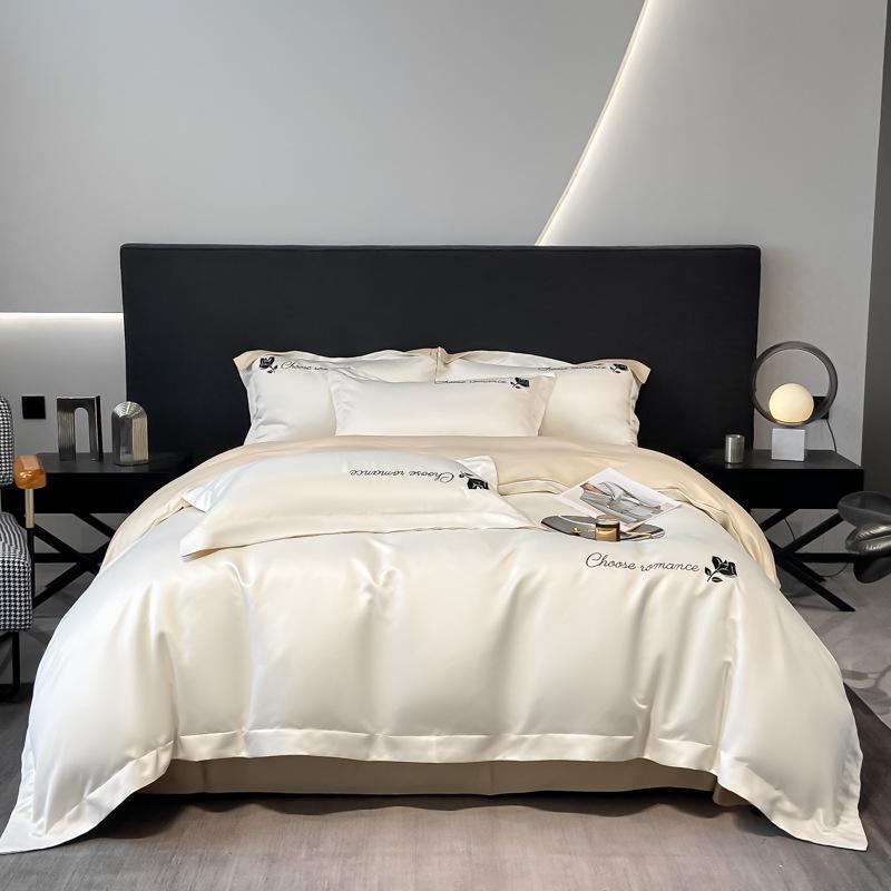 Новый летний комплект из четырех предметов из ледяного шелка, однотонное простое мытье, шелковое постельное белье с вышивкой A