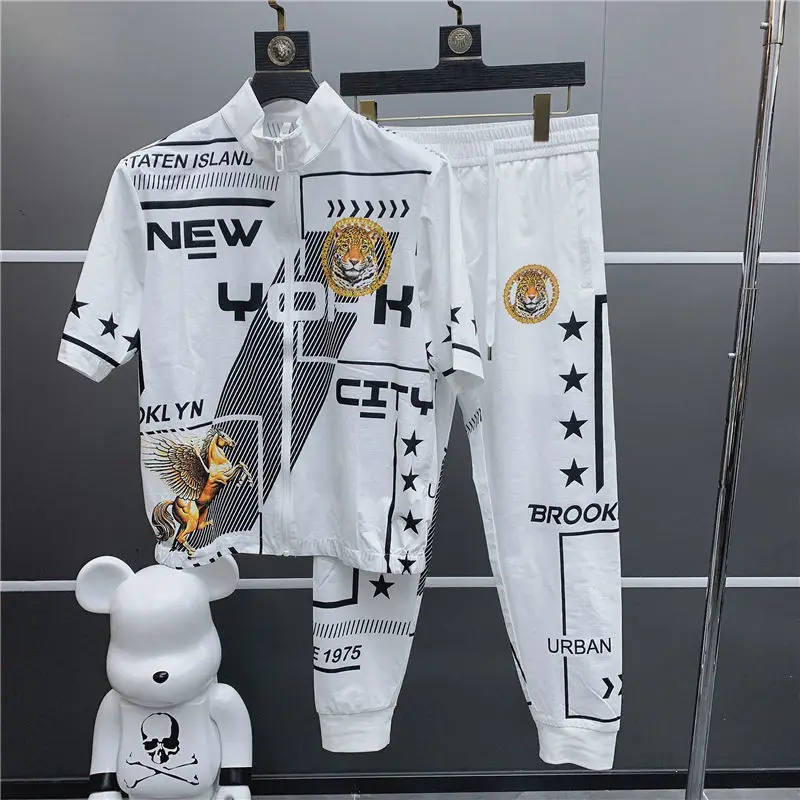 Новый летний мужской костюм Корейская мода спортивная свободная летняя одежда мужской костюм