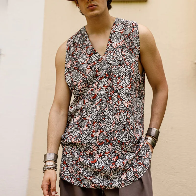 Новый летний 2022 мужской тонкий жилет без рукавов европейский и американский длинный тренд с принтом джемпер мужская одежда