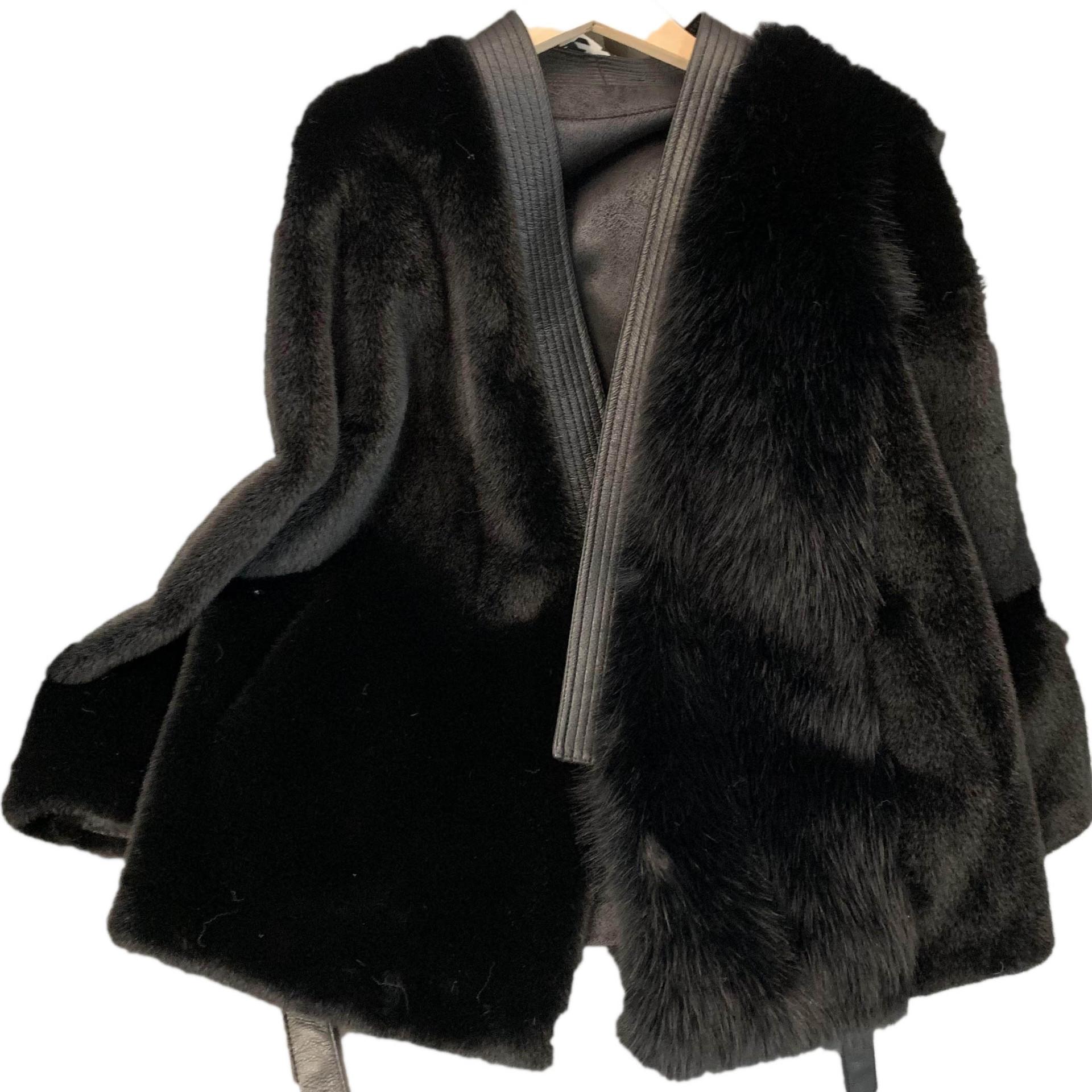Новый меховой пояс, тонкая модель, экологически чистая пушистая тонкая куртка, женская средней длины XXL чёрный