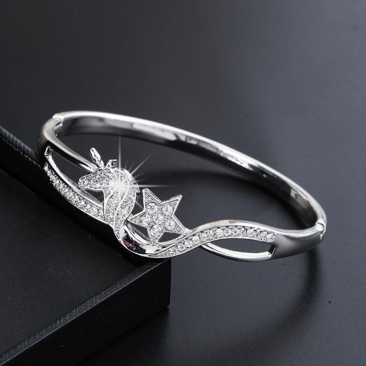 Новый модный креативный индивидуальный дизайн со звездой единорога, милый повседневный универсальный глянцевый браслет для подруги серебряный