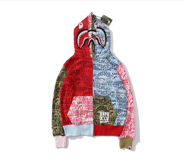 Новый мужской камуфляж акула с капюшоном с принтом плюс кашемировый свитер Мужчины Женщины с капюшоном осень-зима куртка вышивка акула камуфляж Spilce