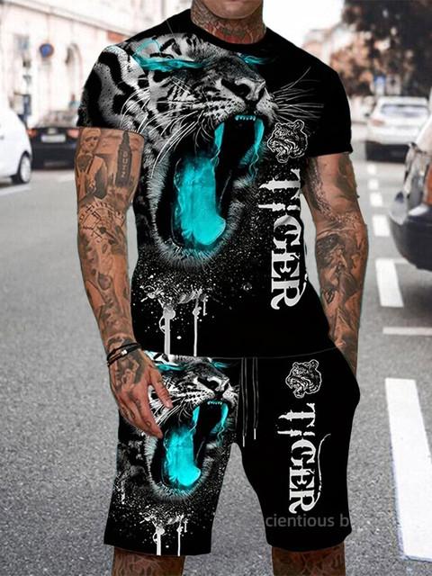 Новый мужской летний повседневный комплект из короткого рукава и шорт, классная футболка с принтом «Король Лев» и шорты на шнурке, мужской комплект M