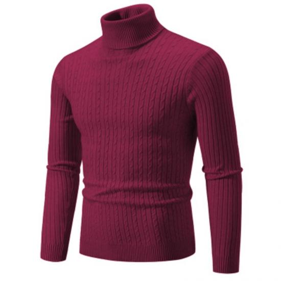 Новый мужской свитер с высоким воротом, однотонный пуловер, вязаный теплый повседневный свитер с высоким воротником, мужские зимние уличные топы XXL вино красного