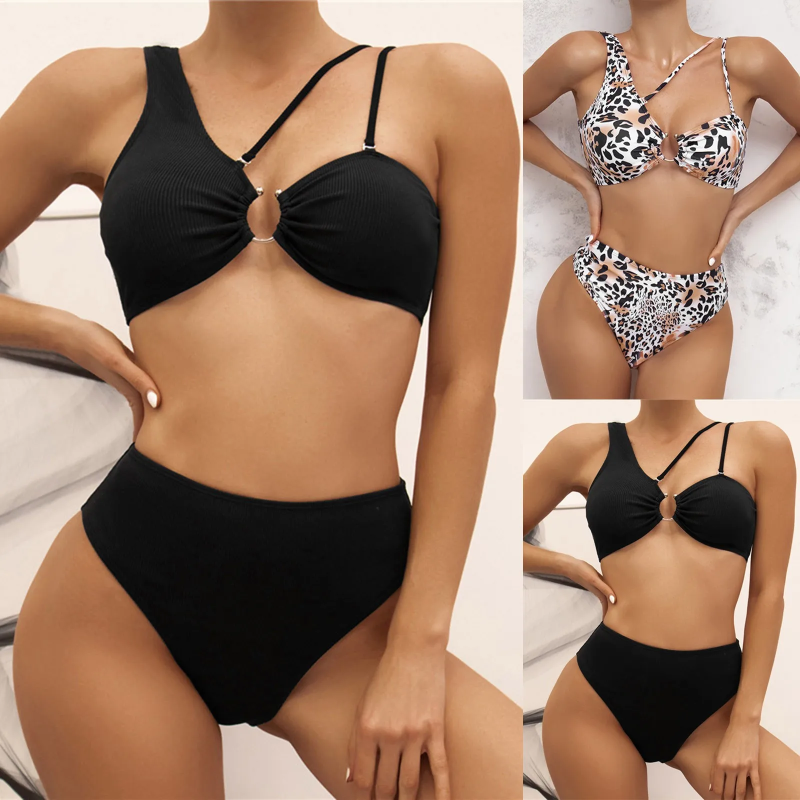 Новый однотонный купальник с леопардовым принтом, бикини, популярный Сексуальный купальник с каймой, бикини, модное бикини