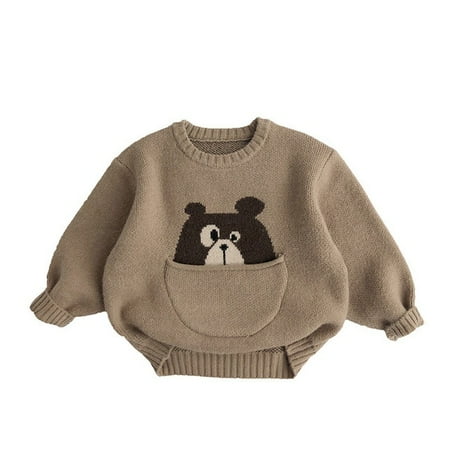 DancePeanut Fall Winter Kids Sweater Children Cartoon Animal Knitted Sweater Big Pocket Boys Knitwear Korean Baby Pullover Tops Clothes