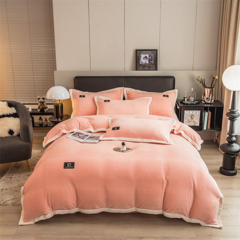 Новый осенне-зимний утолщенный теплый молочный бархатный комплект из четырех предметов, зимний однотонный молочный бархатный комплект из четырех предметов, постельное белье, пододеяльник 1.8m bed sheet model-4pcs