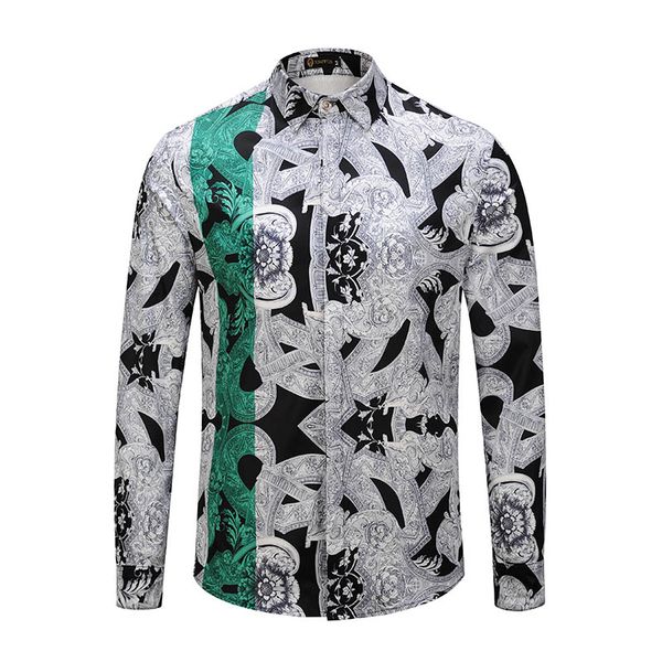 Новый ретро дизайн цвет смесь печати платье рубашка человек тонкий рубашка мужчи