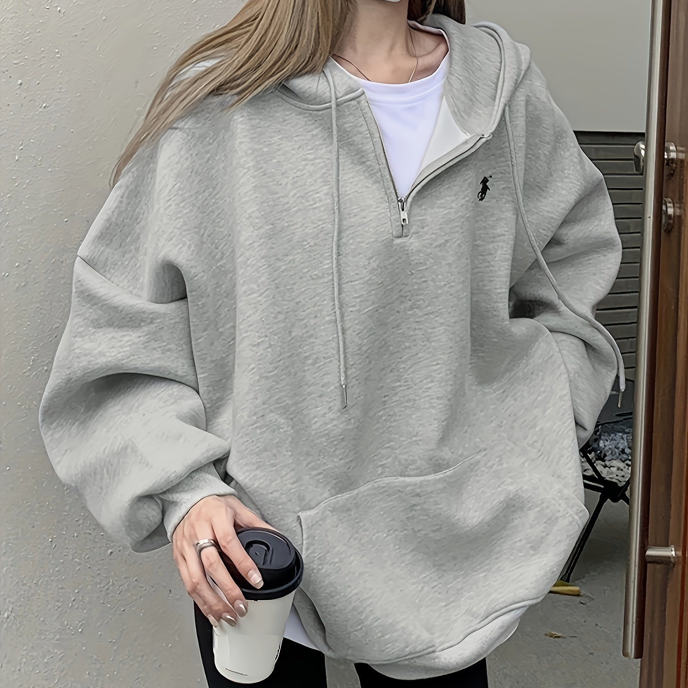 Graphic Embroidered Kangaroo Pocket Hoodie, Casual Long Sleeve Drawstring Hoodies Sweatshirt, Women's Clothing