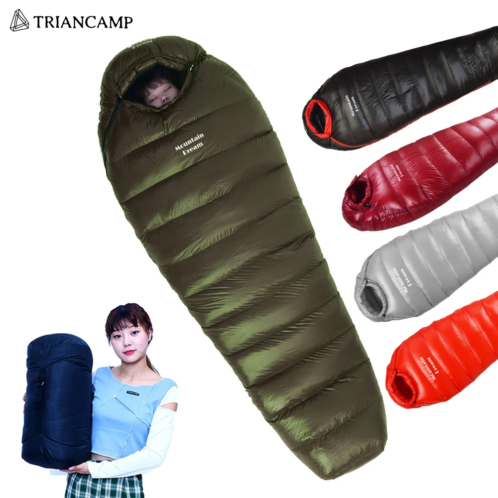 Новый спальный мешок на утином пуху, портативный спальный мешок для кемпинга, сверхлегкое снаряжение для выживания на природе, водонепроницаемое, 4 сезона, 5 видов, толщина
