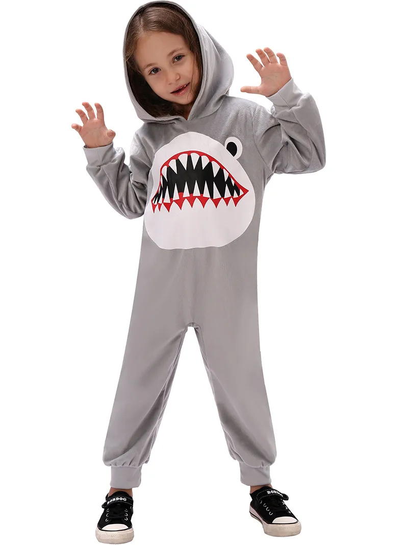 Новый стильный костюм для косплея с животными акулами, серый комбинезон, полный комплект для Хэллоуина, для мальчиков и девочек, Акула, море