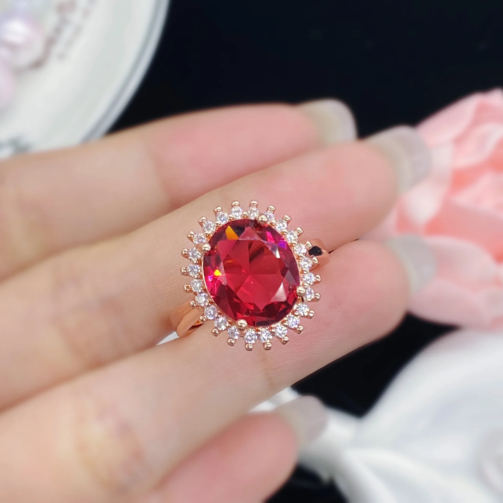 Новый стиль-имитация Красного турмалина принцессы, драгоценный камень, драгоценный камень, Открытое кольцо для женщин