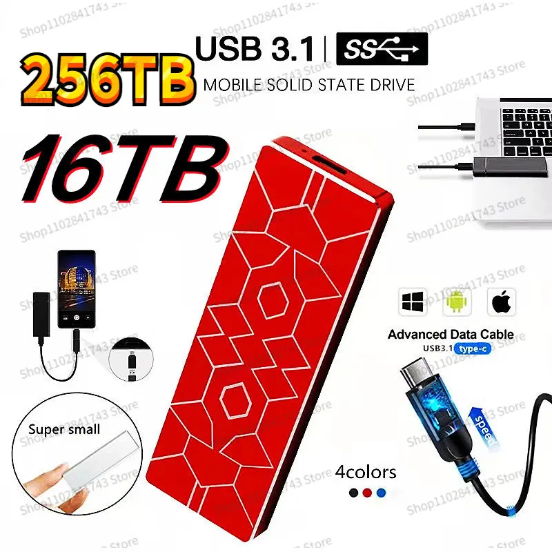 Новый твердотельный накопитель SSD 256 ТБ, портативный накопитель для компьютера, USB 3,1