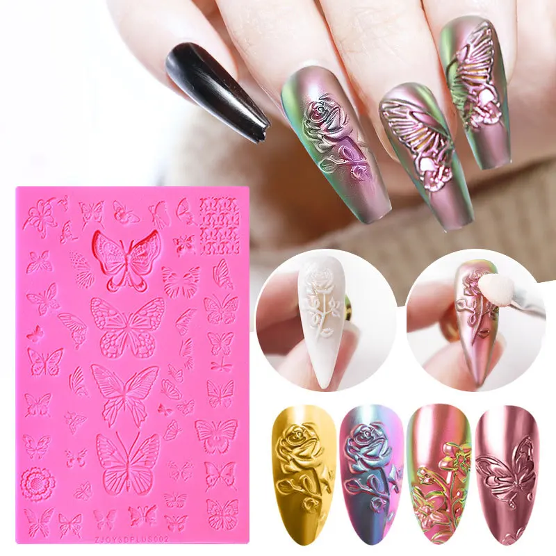 Новый шаблон для ногтей 3D рельефная форма силиконовый шаблон для печати резьба по ногтю скульптура трафареты Маникюр Аксессуары для ногтей