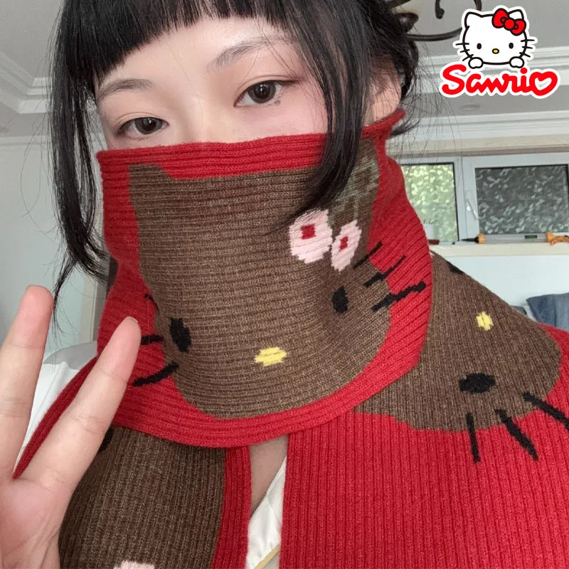 Новый шарф из пашмины Sanrio Hello Kitty, осенне-зимняя теплая шаль с героями мультфильмов, толстая теплая шаль, морозостойкое ветрозащитное одеяло, шарф, подарок