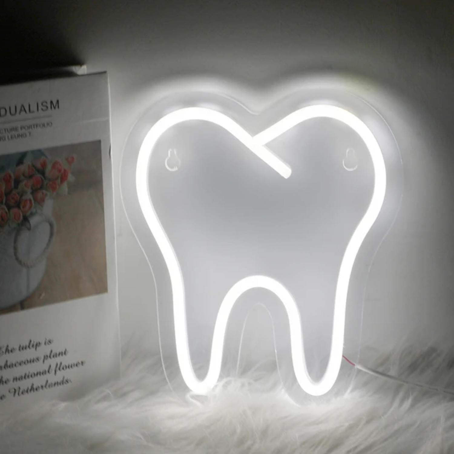 Новый яркий неоновый светодиодный знак в виде зуба - привлекательный и красочный декор для праздничного стола - праздничный дисплей для витрины магазина и арт-ро USB белый