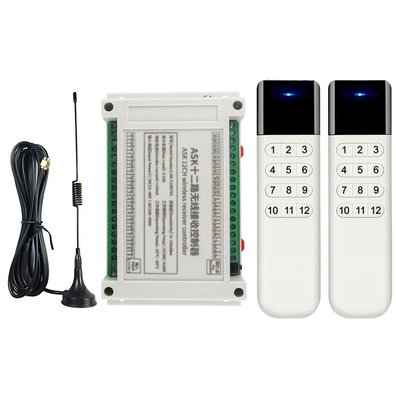 433MHZ AC 110V 220V 380V 12CH RF Wireless Remote Control Switch System Transmitter & Receiver/lamp/Garage Door/shutters/window