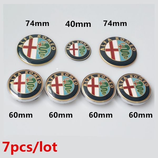 Новый 74 мм ALFA ROMEO полный комплект автомобилей знак наклейка передний капот + задняя эмблема + 60 мм колпак ступицы колеса+40 мм руль стикер