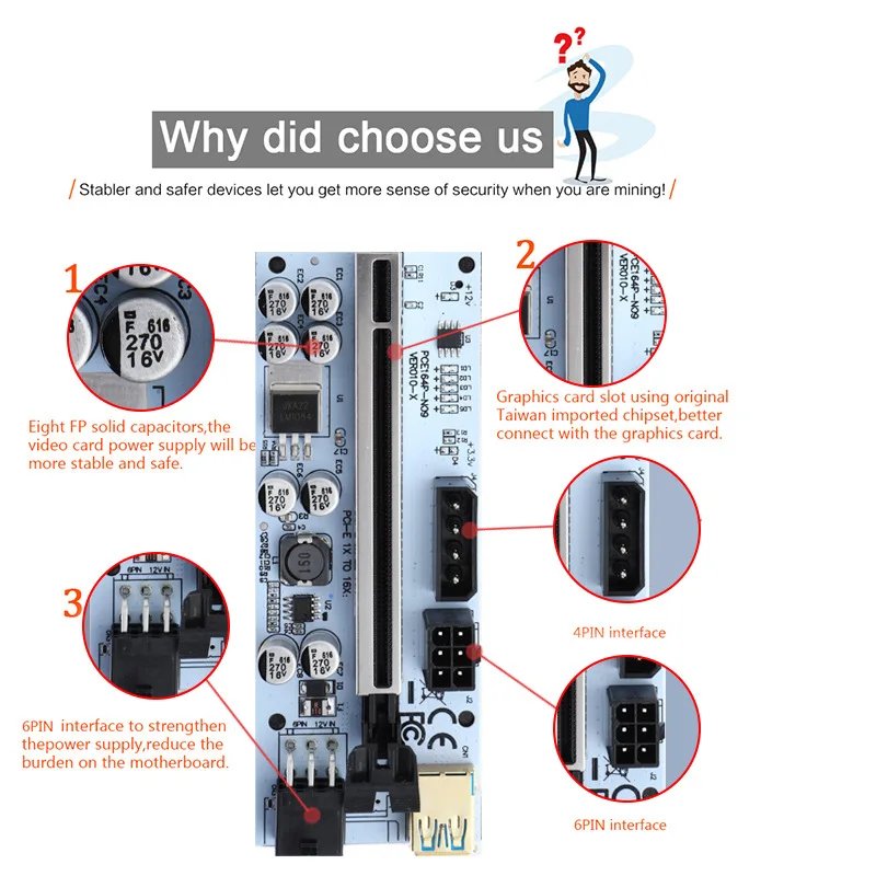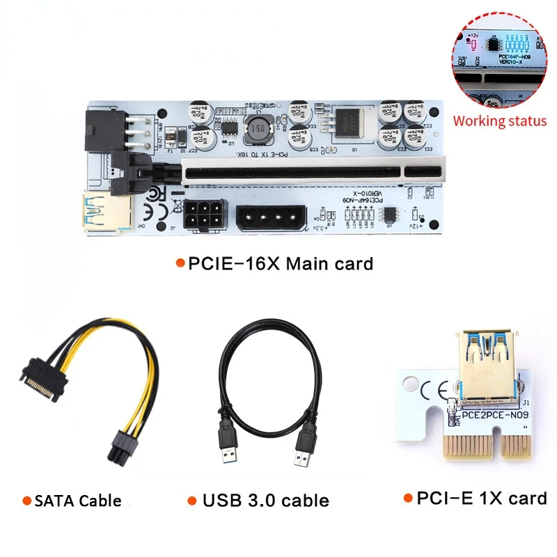 Новый VER010-X Pcie Riser 010 Экспресс X16 кабельный Райзер для видеокарты 4Pin 6Pin мощность 8 емкость для майнинга