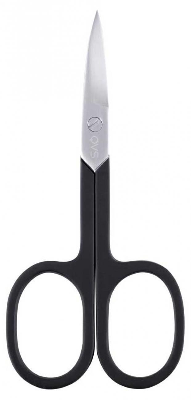 Ножницы для маникюра QVS с изогнутыми лезвиями и черными ручками, 1шт