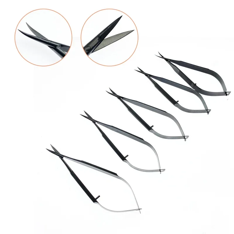 Ножницы для офтальмологии, черные, с плоской ручкой, ножницы для микрохирургии глаз, 12 см титановые