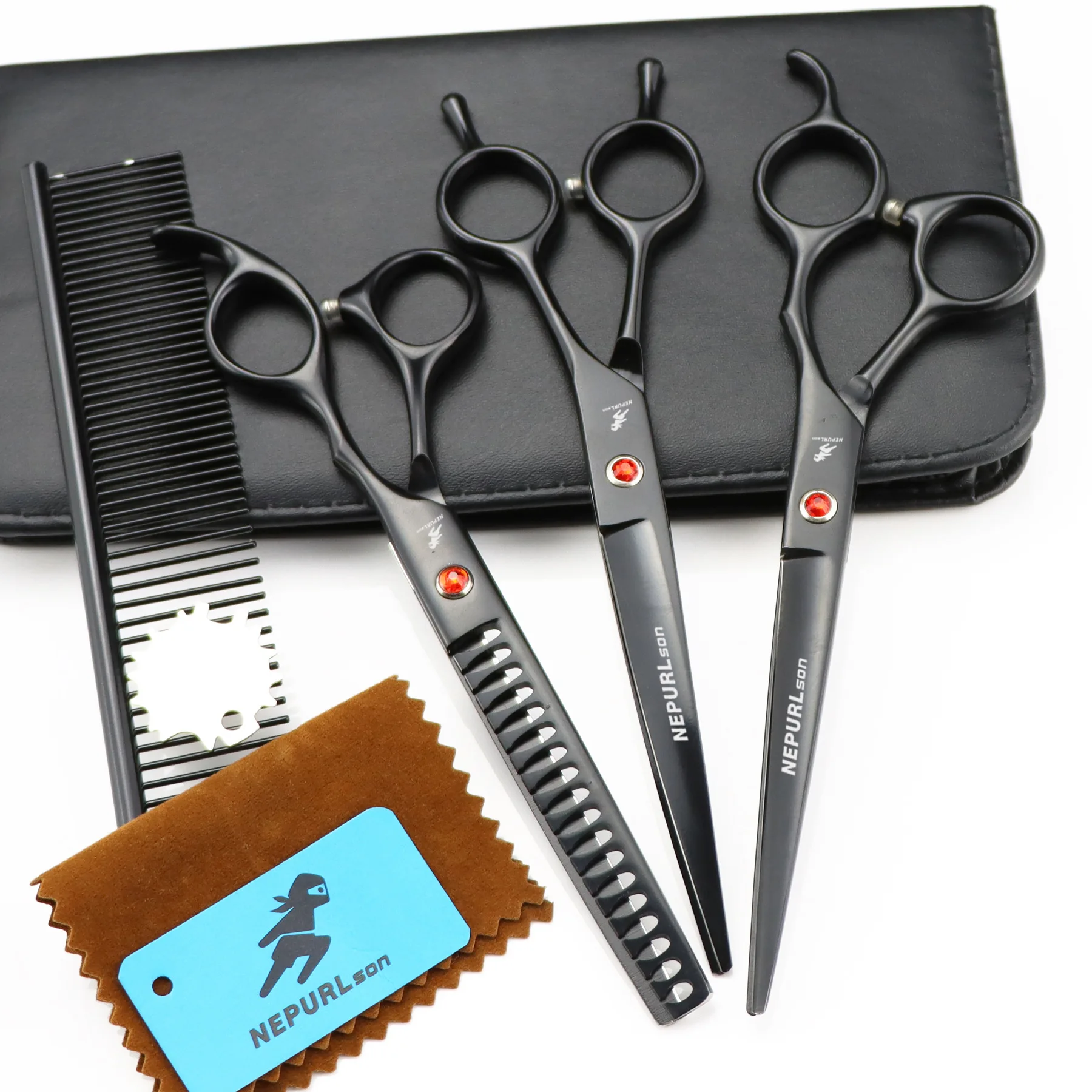 Ножницы для ухода за собаками, из нержавеющей стали 440c, 7 дюймов, прямые ножницы для питомцев, изогнутые зубы, набор ножниц для собак