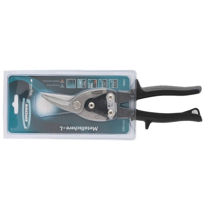 Ножницы по металлу торговой марки GROSS предназначены для точного прямого и левого реза листового металла толщиной до 1,2 мм и нержавеющей стали толщиной до 0,7 мм. Рабочие части ножниц изготовлены из высоколегированной стали (CrMo), содержание молибдена и ванадия в ее составе придает необходимую жесткость и высокую твердость. Режущие губки проходят процесс индукционной закалки и имеют твердость 60–62 HRС. Ножницы общей длиной 250 мм оснащены эргономичными двухкомпонентными рукоятками, оригинальная форма которых минимизирует риск травм и обеспечивает удобство при длительных работах.